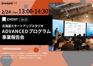 2026/2/24にスタートアップカンファレンスイベント「SHAKE H」内で、北海道スタートアップスタジオ「ADVANCEDプログラム」事業報告会を開催いたしました!